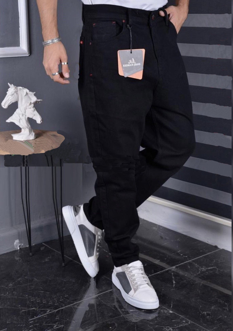 Чоловічі чорні прямі класичні звужені донизу джинси банани
