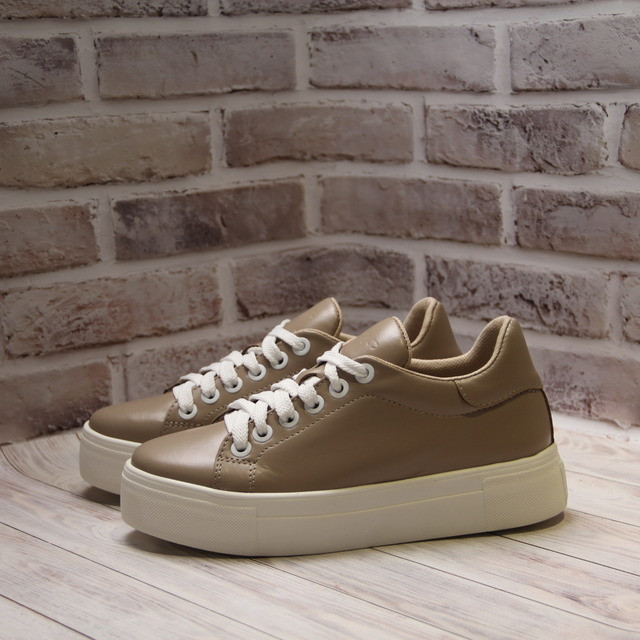 Жіночі бежеві шкіряні кеди на невеликій платформі