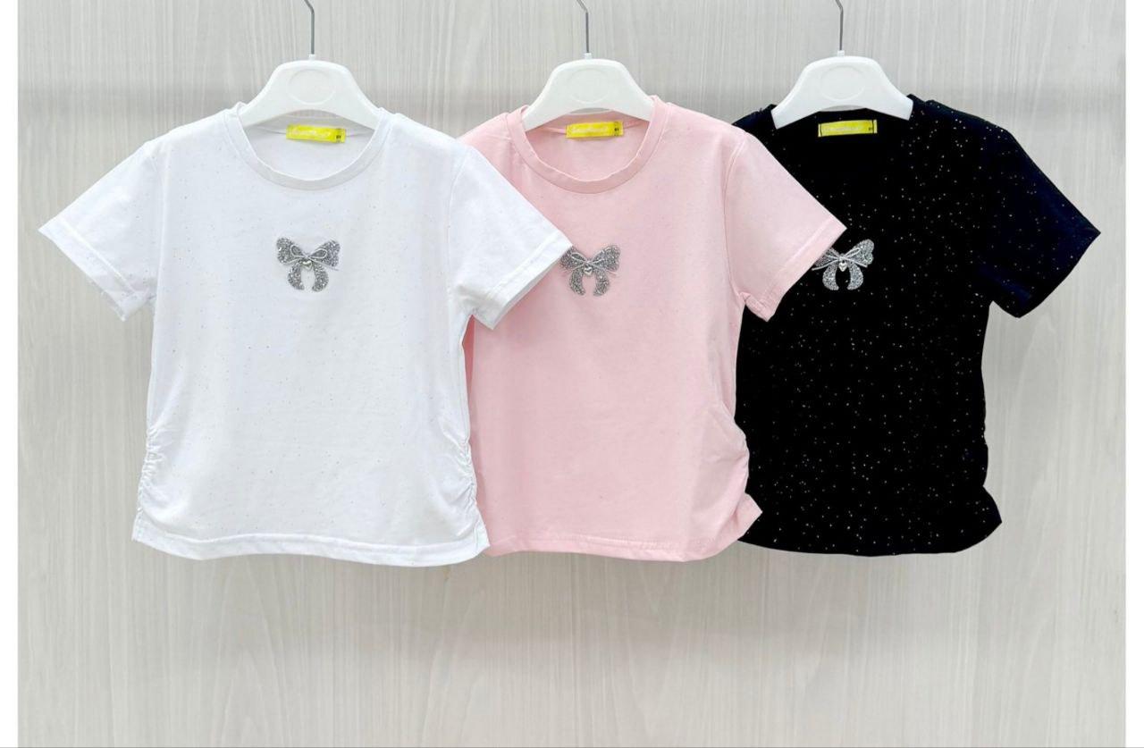 Футболка для дівчинки з бантиком у молочному кольорі на 16 років